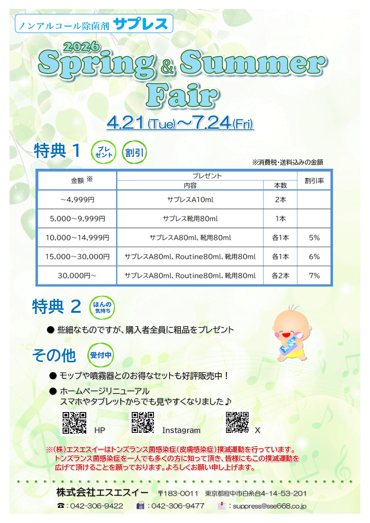 アルコール成分のように手が荒れなくて、次亜塩素酸みたいに臭いも無くて、しかも除菌効果が欲しい…そんな除菌剤なんて無いとあきらめていたあなた。そのご要望にお応えして創ったのが、ノンアルコール除菌剤サプレスです。