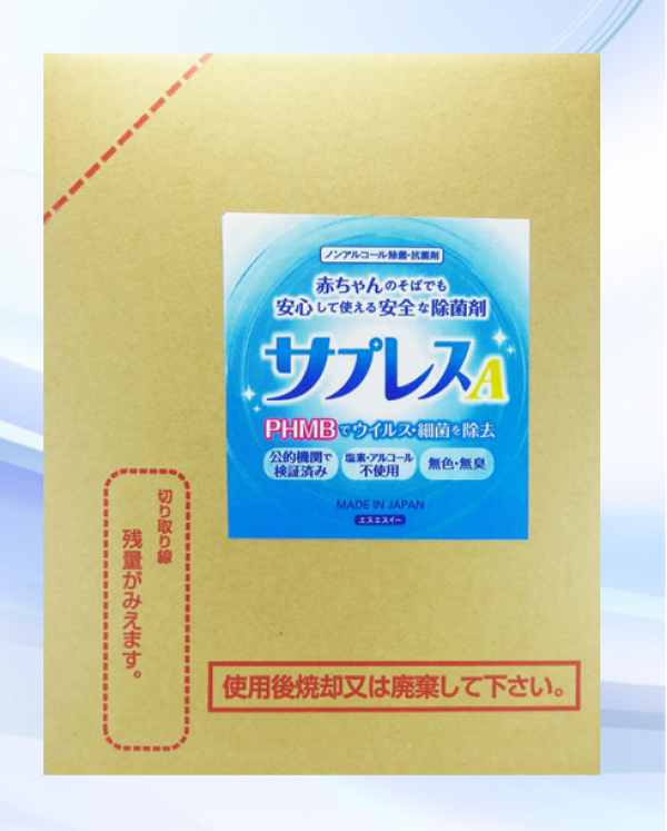 サプレスは安全性が高く、人の健康、地球環境を考えた、どなたにでも安心して使える本当の意味でやさしい、ノンアルコールの除菌剤です。